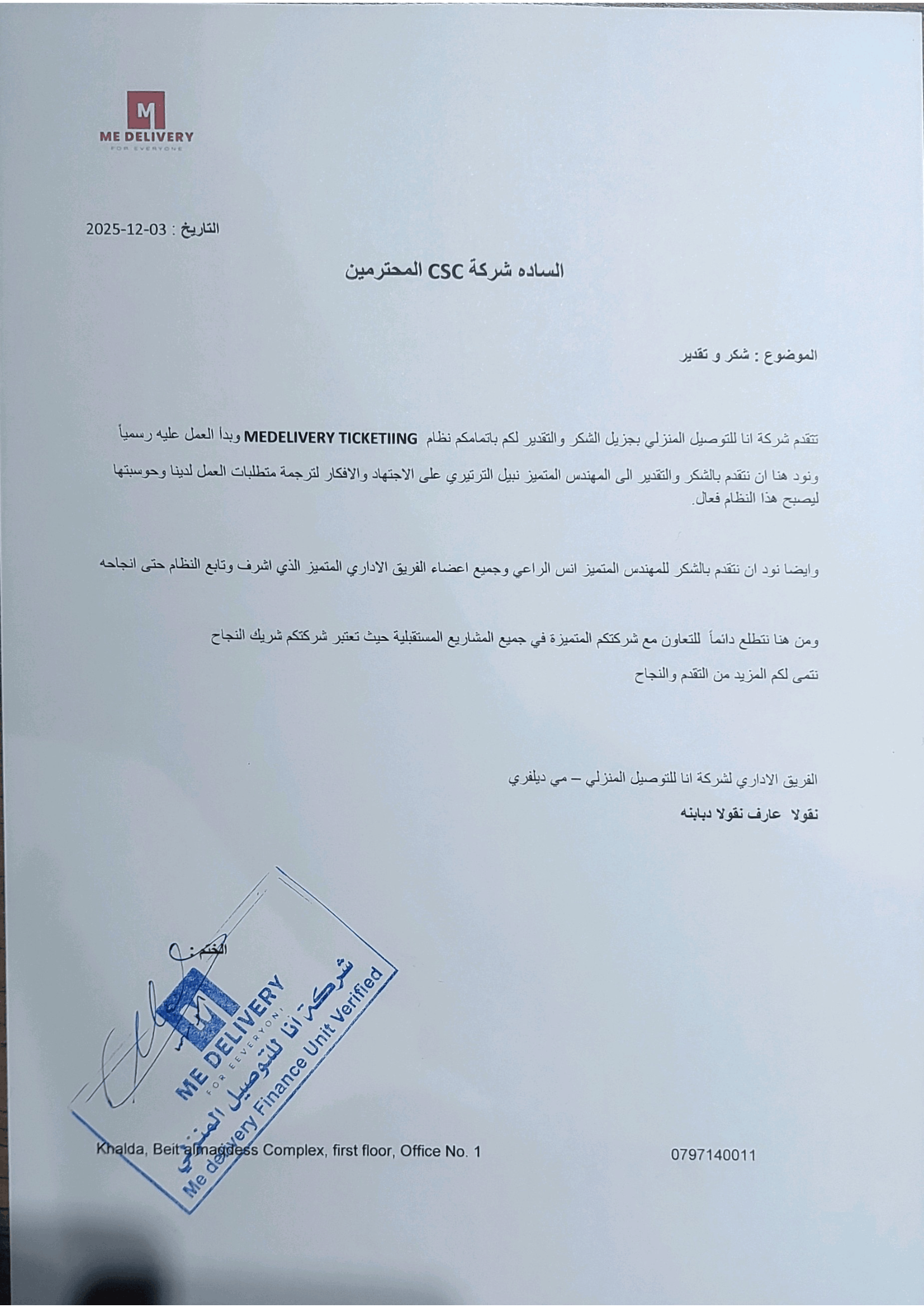 CSC Beyond is honored to receive a formal letter of appreciation from Me